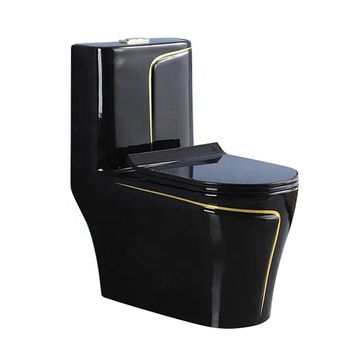 Luxe Multi-Kleuren Eendelig Toilet Zwart Goud Lijn Keramische Wc Eendelig Toiletpot Set